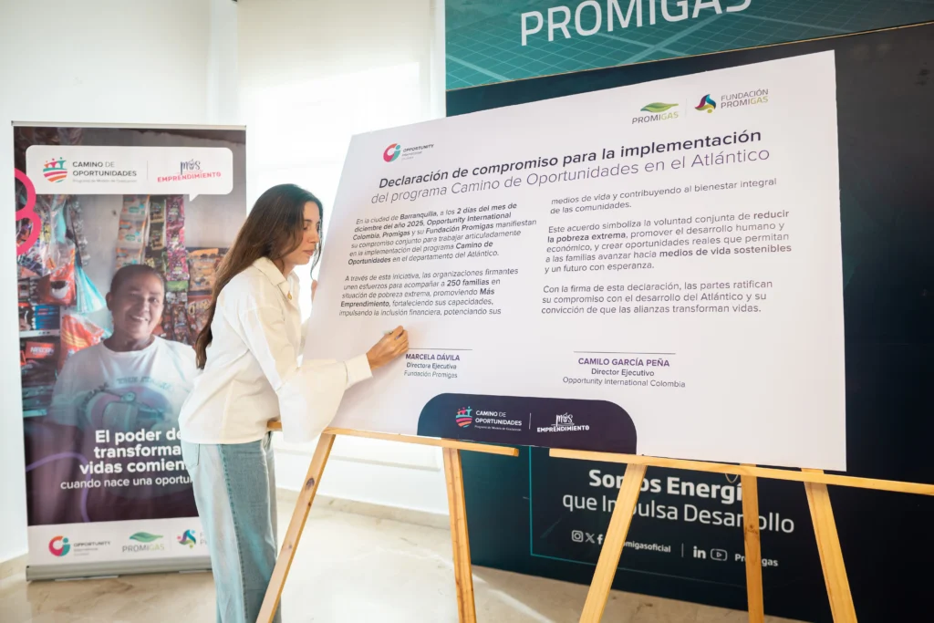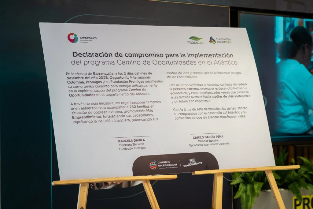 Barranquilla, 2 de diciembre de 2025. Promigas, su Fundación Promigas y Opportunity International Colombia anuncian su alianza para implementar el programa Camino de Oportunidades en el departamento del Atlántico, una metodología integral de superación de pobreza extrema basada en el reconocido Enfoque de Graduación.